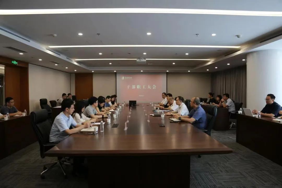 6月21日上午,母基金管理平台在集团4号会议室召开职工大会,宣布平台机构设置、领导暂定分工和人员初步安排,并部署下一阶段工作。会议由平台党委副书记、总经理张涵主持,集团党委委员、总会计师左飞出席会议并作重要讲话,其他领导班子成员及全体职工参会。