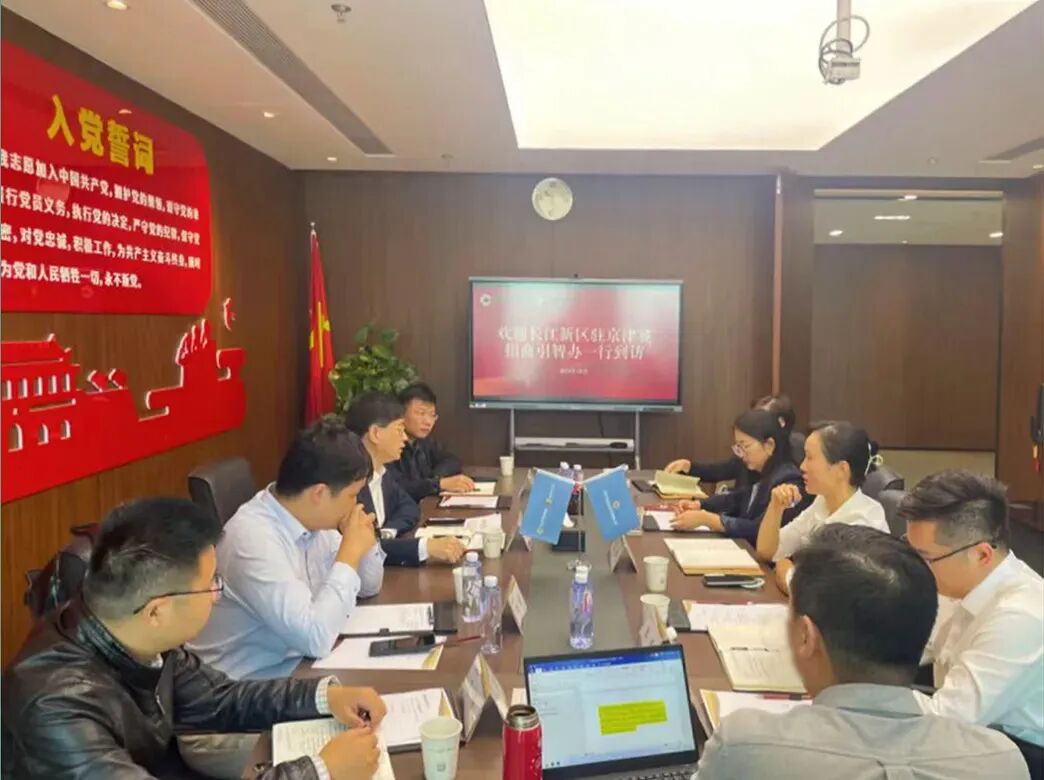 长江新区长江新区投促局、产业投资有限公司、驻京津冀招商引智办相关负责人,长江产投公司资产财务部、协调组织部负责人参加此次座谈。